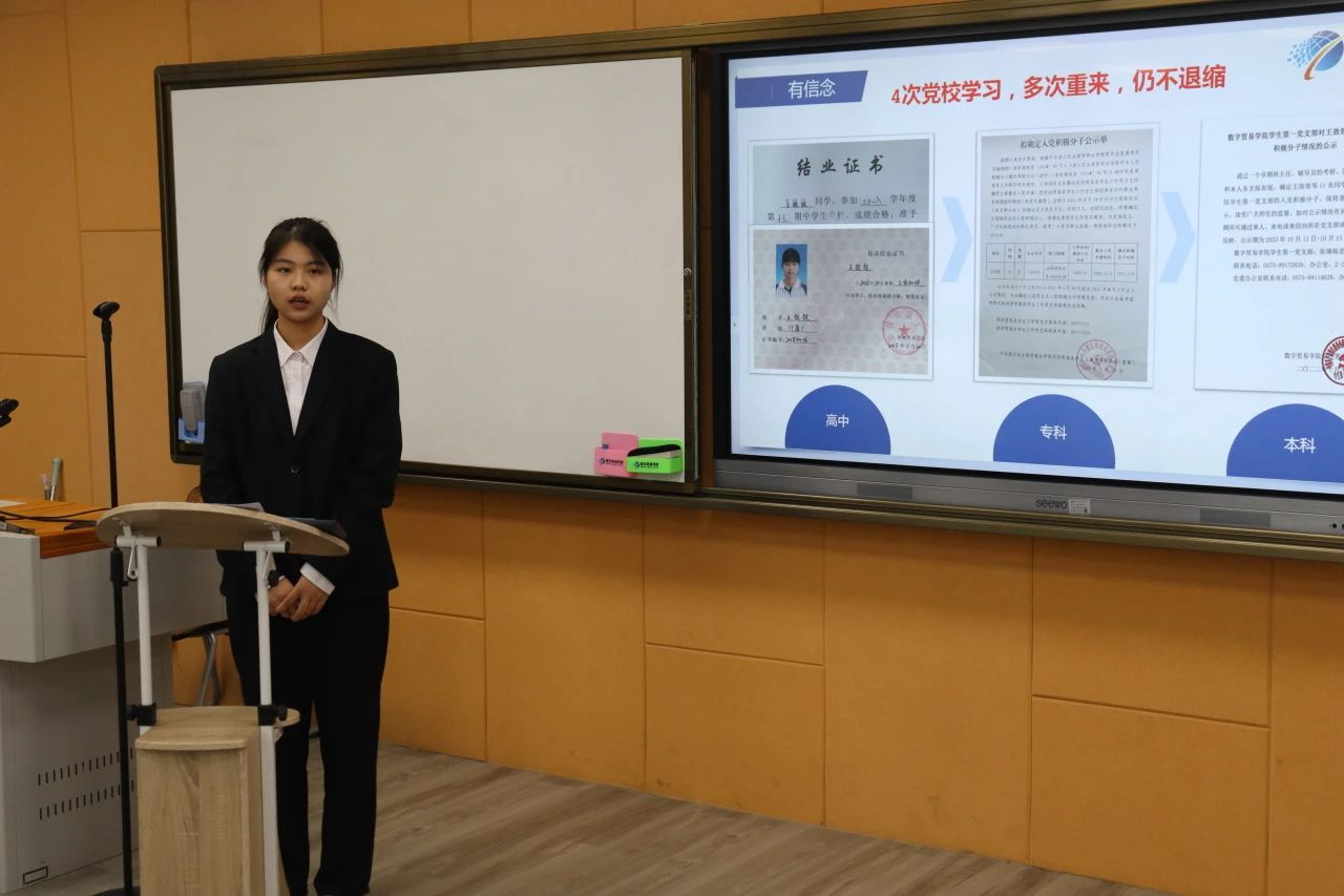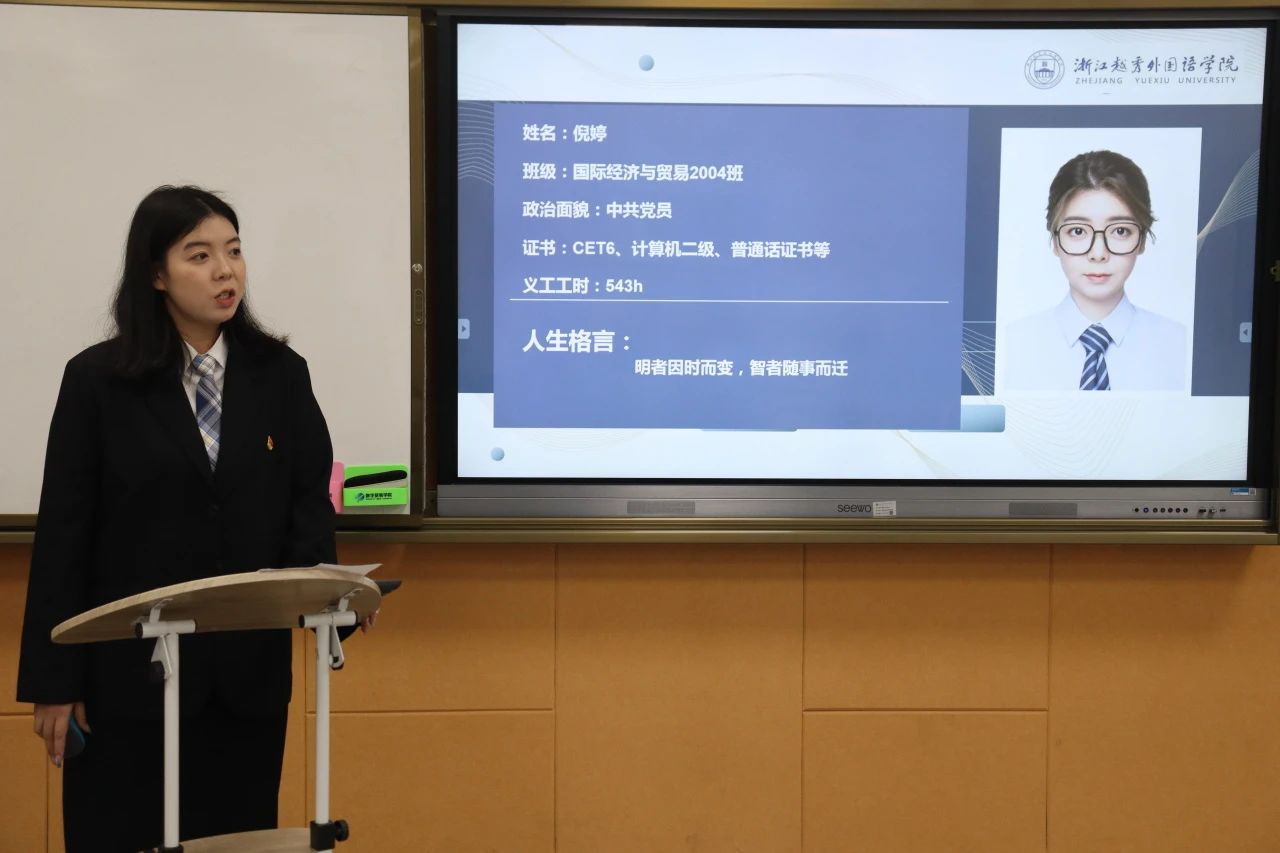 五位候选人依次进行答辩,他们就个人思想政治素养、学业成绩、科研经历、个人荣誉等方面进行了全方面的成果呈现。条理清晰、表达流畅的精彩答辩充分展示了候选人们积极向上的青春风采。