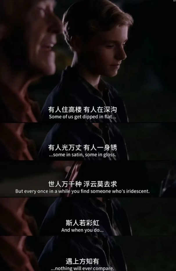 有些人会渐露平庸,有些人会小有所成,还有人会出类拔萃,但你偶尔才能遇上一个光彩夺目的人,当你真正遇到这一刻才能明白其中的美好,从此以后,其他人就不过是匆匆浮云。